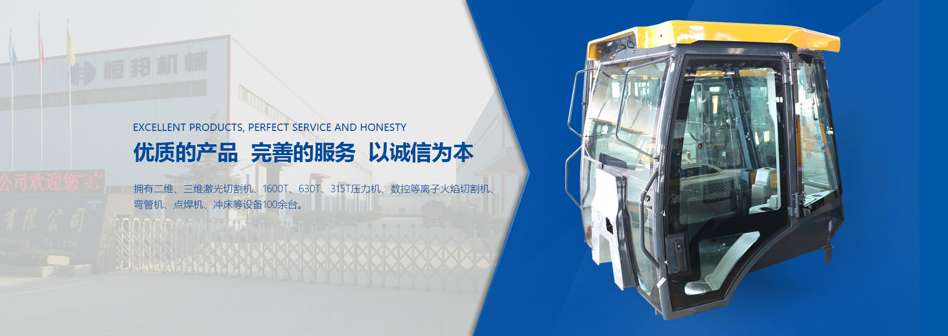 揚(yáng)州市恒邦機(jī)械制造有限公司位于風(fēng)景秀麗的揚(yáng)州市江都區(qū)丁伙工業(yè)園區(qū)。瀕臨長(zhǎng)江,緊靠京滬高速、啟揚(yáng)高速,地理?xiàng)l件優(yōu)越,交通營(yíng)運(yùn)便利。我公司集多年模具開(kāi)發(fā)和鈑金制造經(jīng)驗(yàn),自2009年起,專注生產(chǎn)工程機(jī)械駕駛室、配重塊、覆蓋件和特種駕駛室。研發(fā)設(shè)計(jì)技術(shù)人員30名,員工300名。現(xiàn)代化生產(chǎn)車間20000平米。...